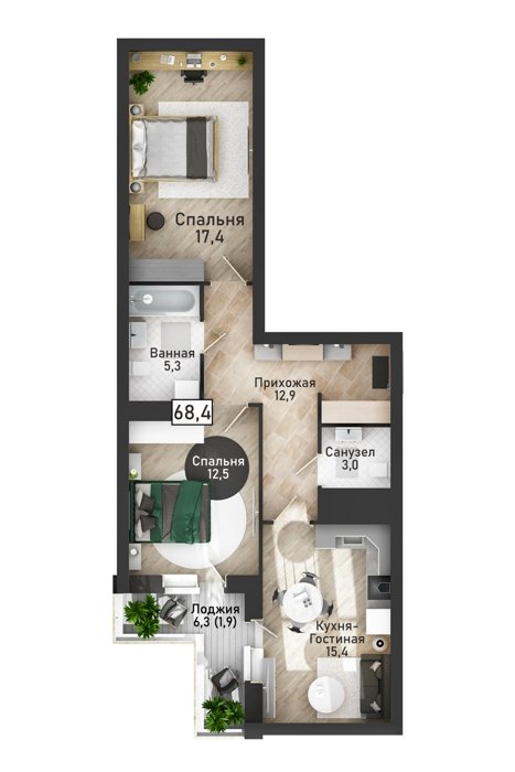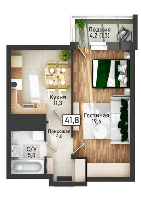 Площадь от 39 м2