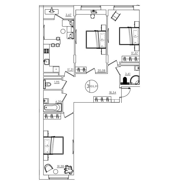 Площадь от 106 м2