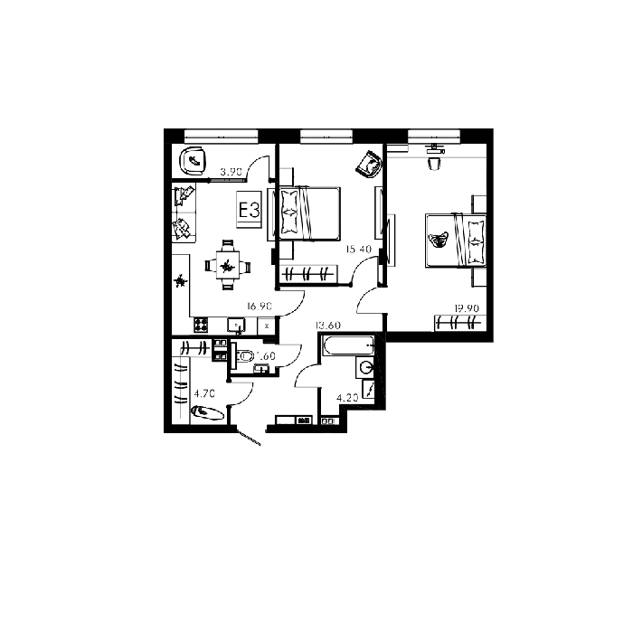 Площадь от 68 м2